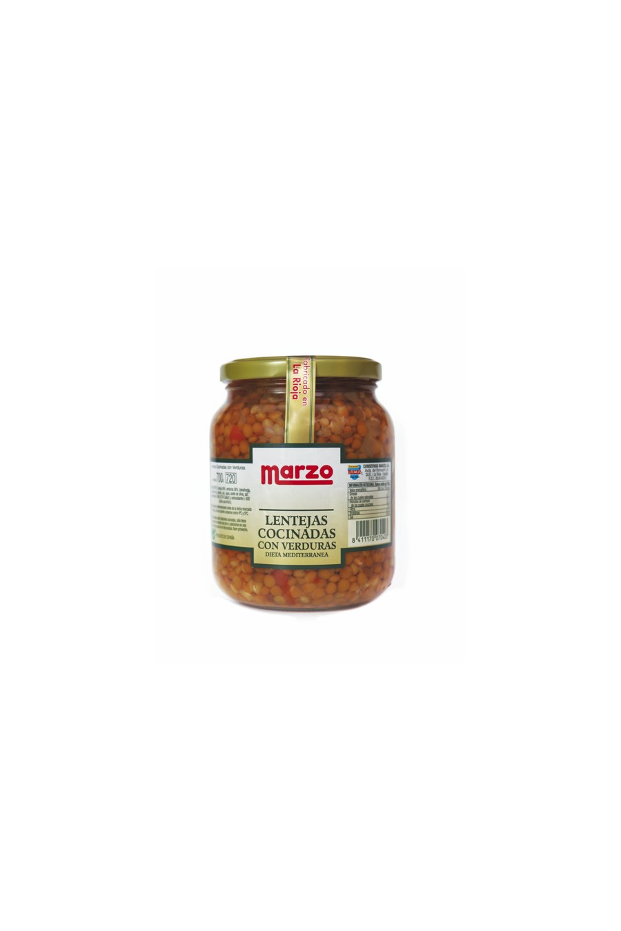 Lentejas cocinadas con zanahoria, pimiento rojo, cebolla, ajo y aceite de oliva